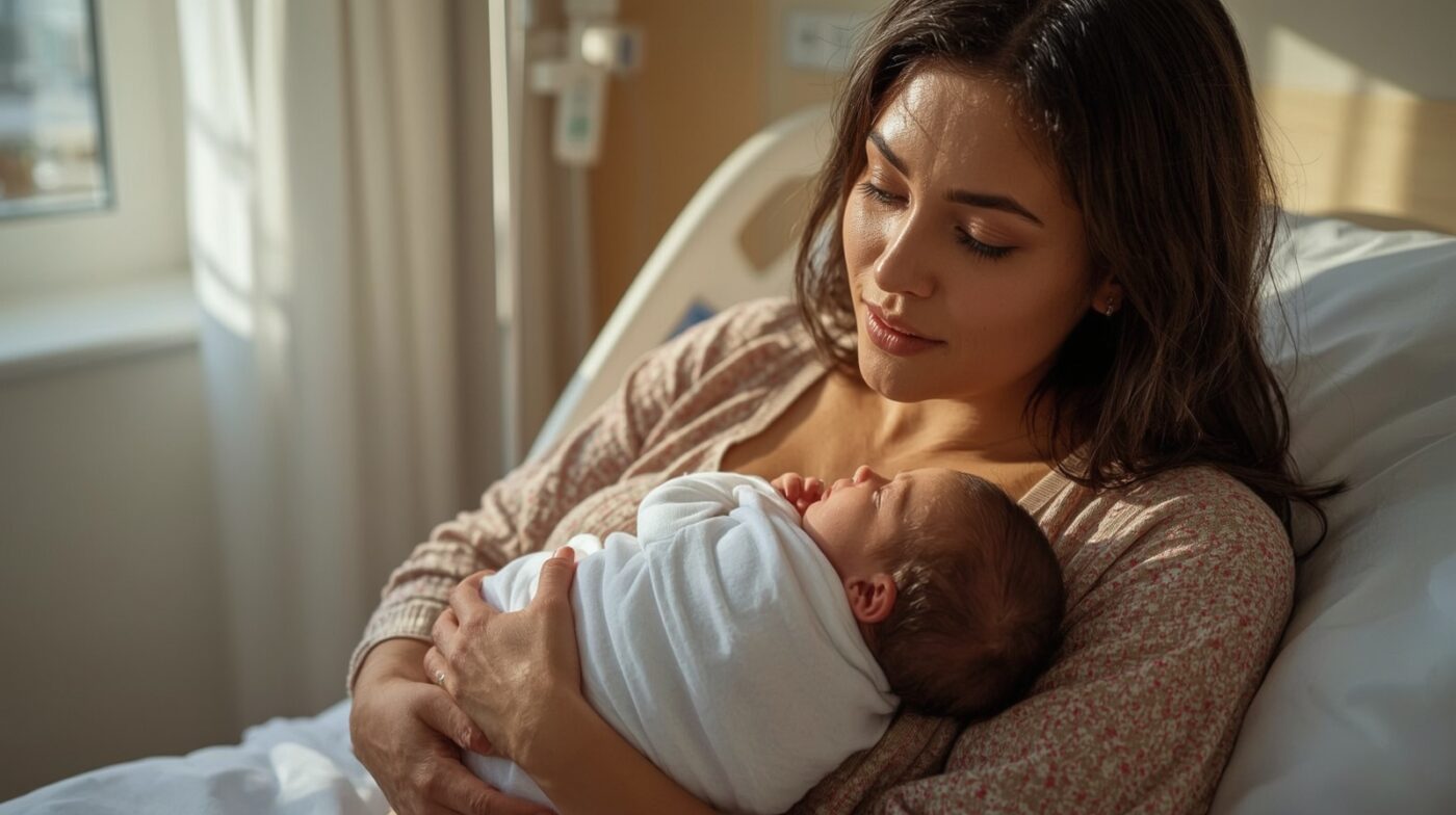 Mutter hält Neugeborenes nach erfolgreicher Kinderwunsch-Behandlung mit RTT Unterstützung