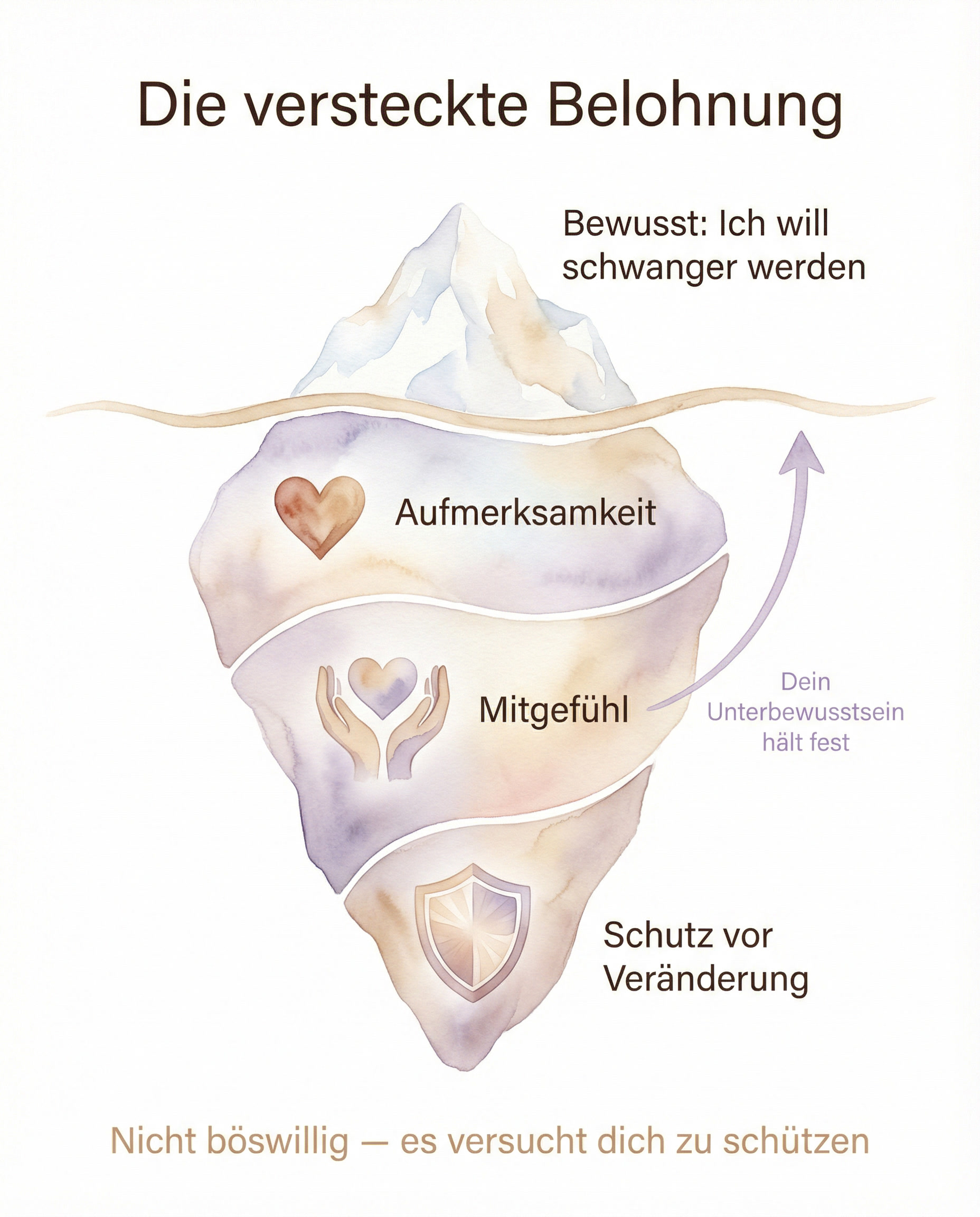 In der Psychologie nennt man das „sekundären Krankheitsgewinn“. Dabei geht es nicht darum, dass du bewusst nicht schwanger werden willst. Vielmehr bemerkt dein Unterbewusstsein, dass du in dieser Situation etwas bekommst – vielleicht besondere Aufmerksamkeit, tiefes Mitgefühl oder das Gefühl, gebraucht zu werden.